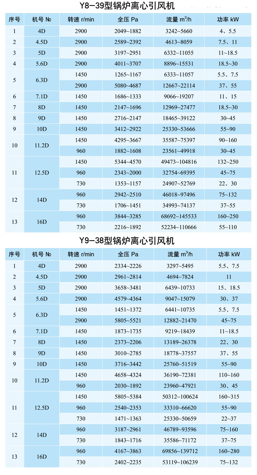 1、本風(fēng)機(jī)制成單吸入,機(jī)號(hào)有№4、№5、№5.6、№6.3、№7.1、№8、№9、№10、№11.2、№12.5、№14、№16十三個(gè)機(jī)號(hào)。